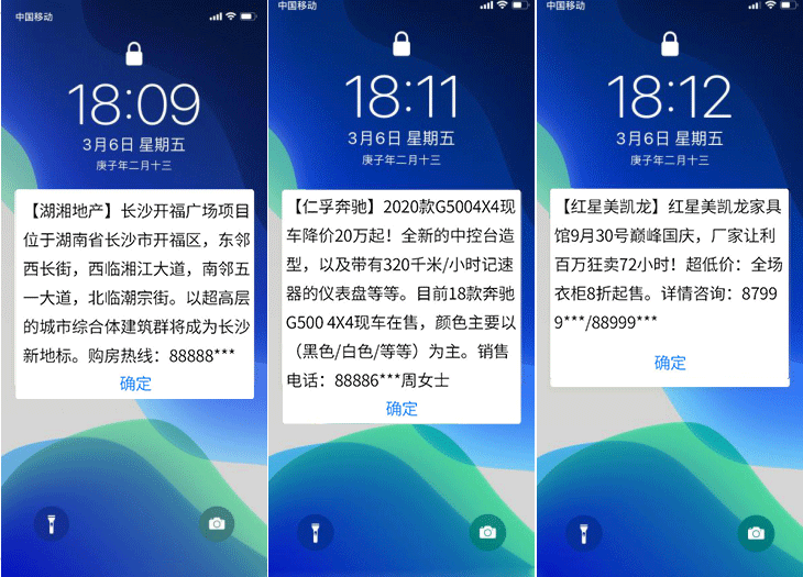 閃信群發(fā),高到達(dá)率,高閱讀率,低攔截率,閃信彈屏、直接閱讀,短信內(nèi)容不留存手機(jī),精準(zhǔn)推送,無攔截?zé)o打擾、閱后即焚。
